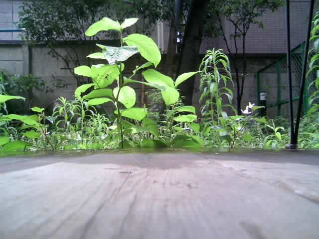 庭でドクダミの花を眺めて