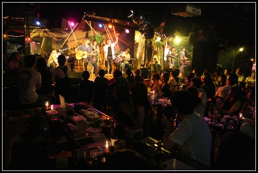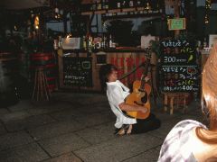 そして案の定、ライブの途中で雨が降り出してきて、屋根のある場所で生声ライブ。ボクの場合、マイクを通したライブよりもこっちの方が性にあってるかもな。